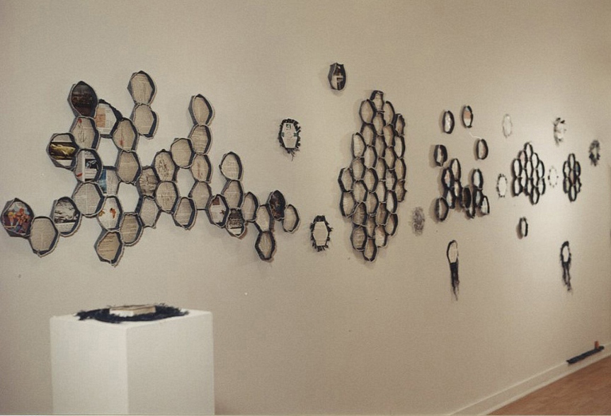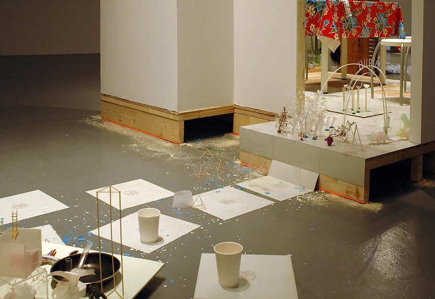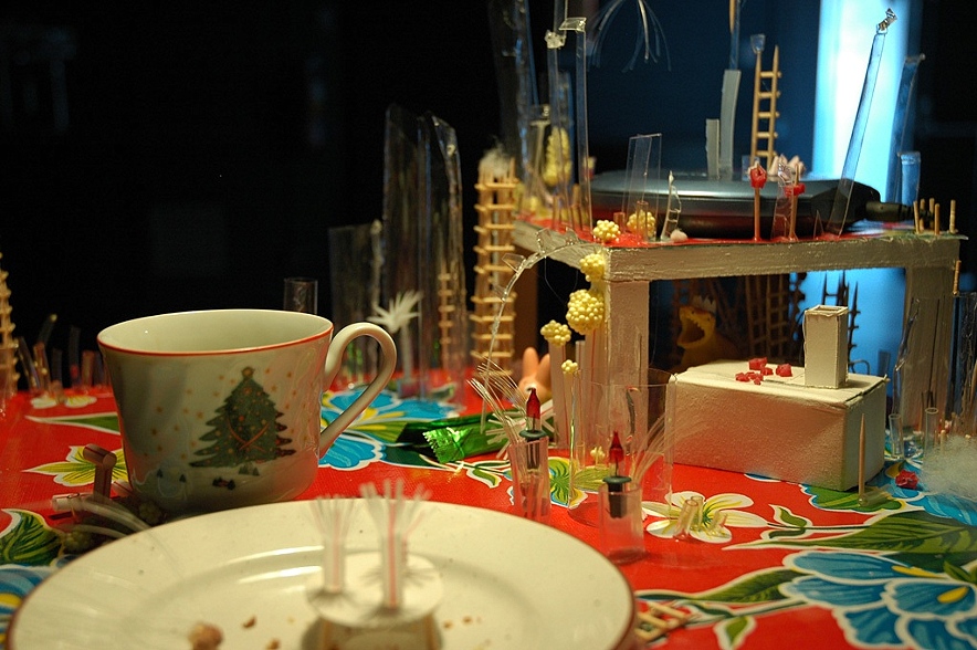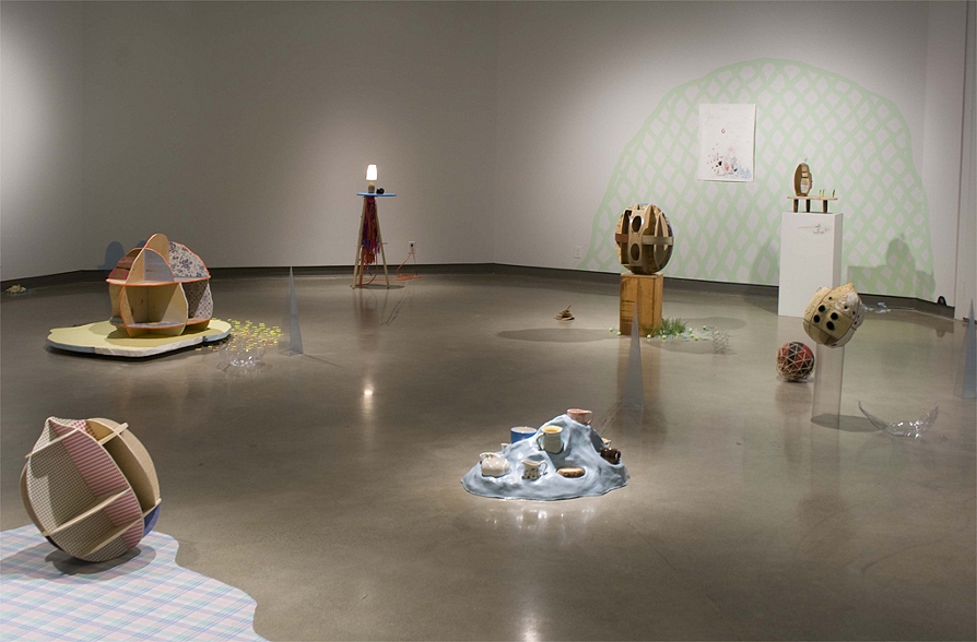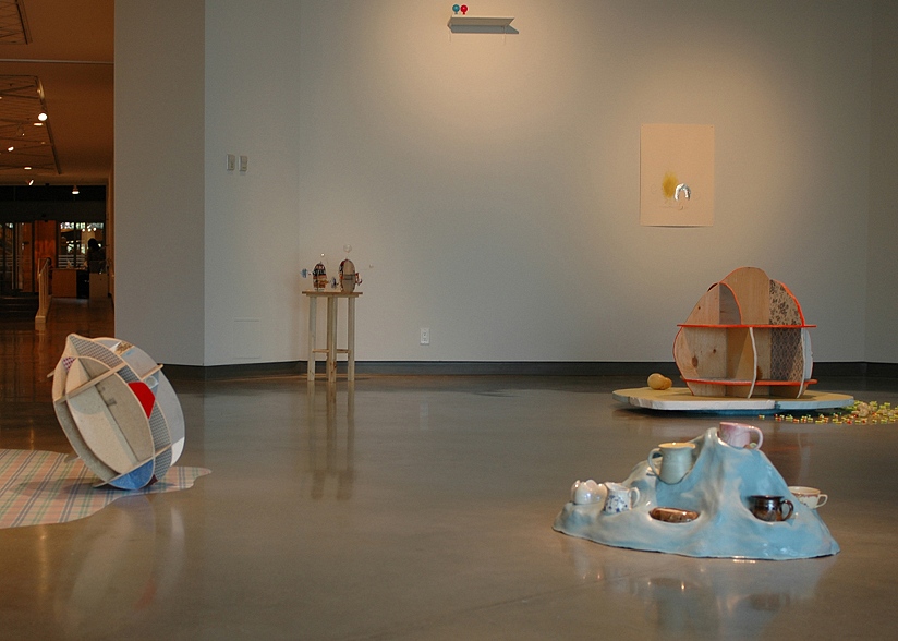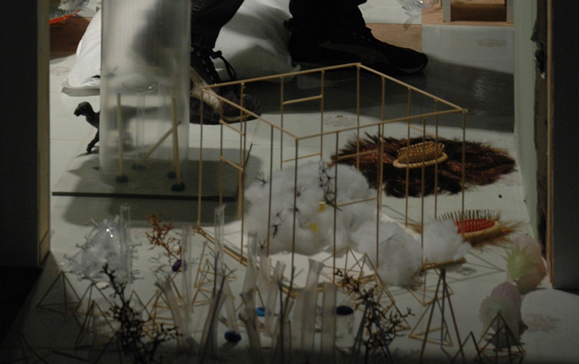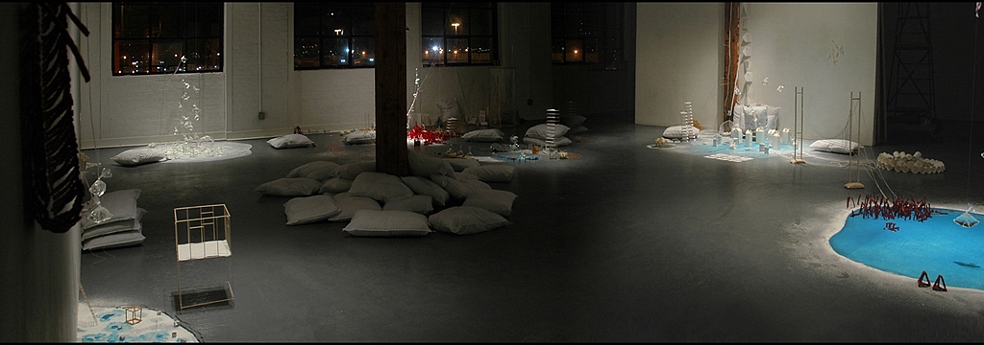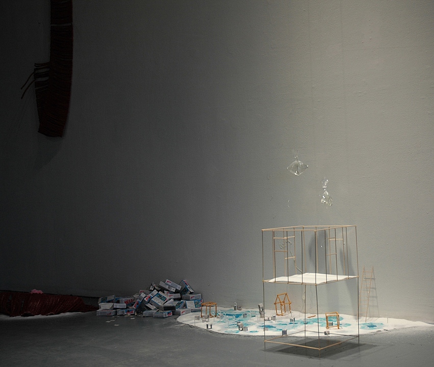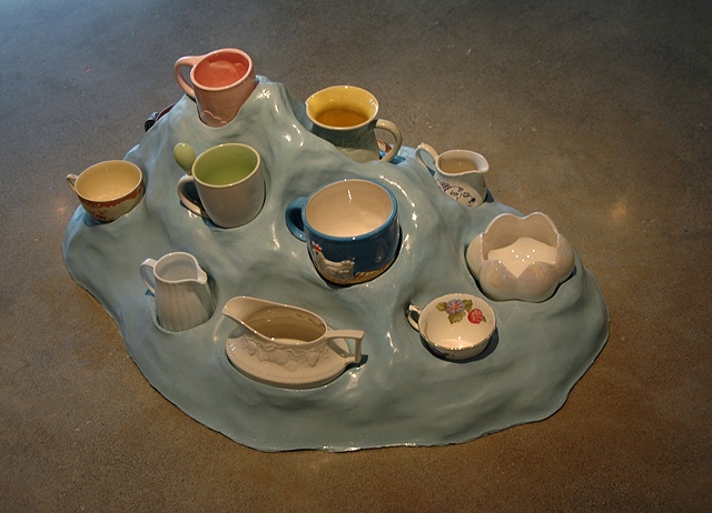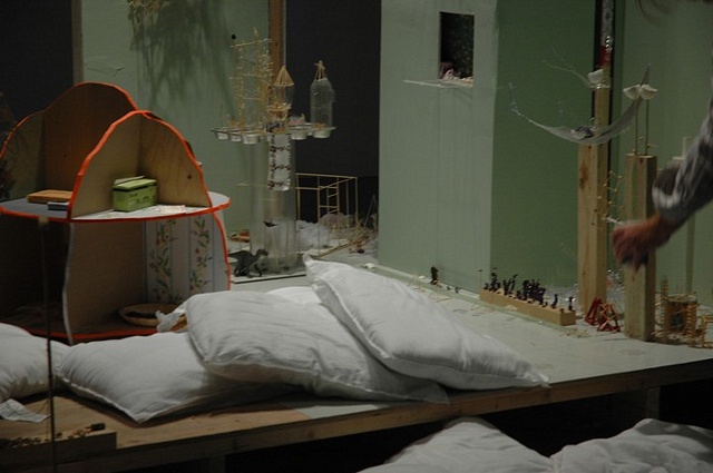 Pillows, jell-o, liquorice, sandwich bags, water, sugar, shampoo, pretzels, envelopes, pins, coffee cups, milk cartons, feathers, yarn and other mixed media