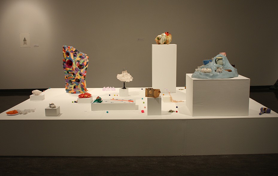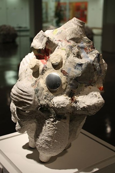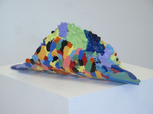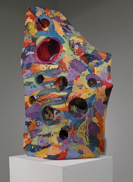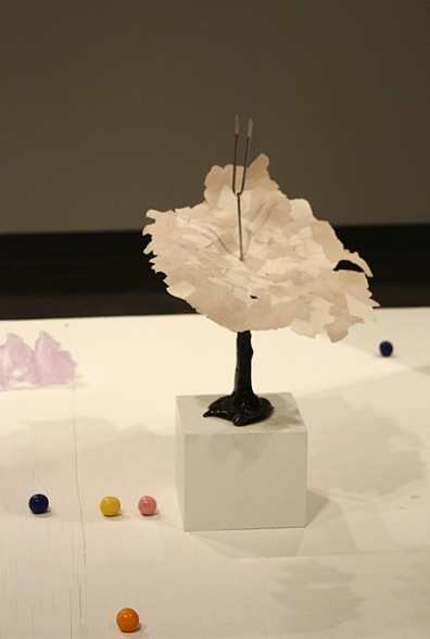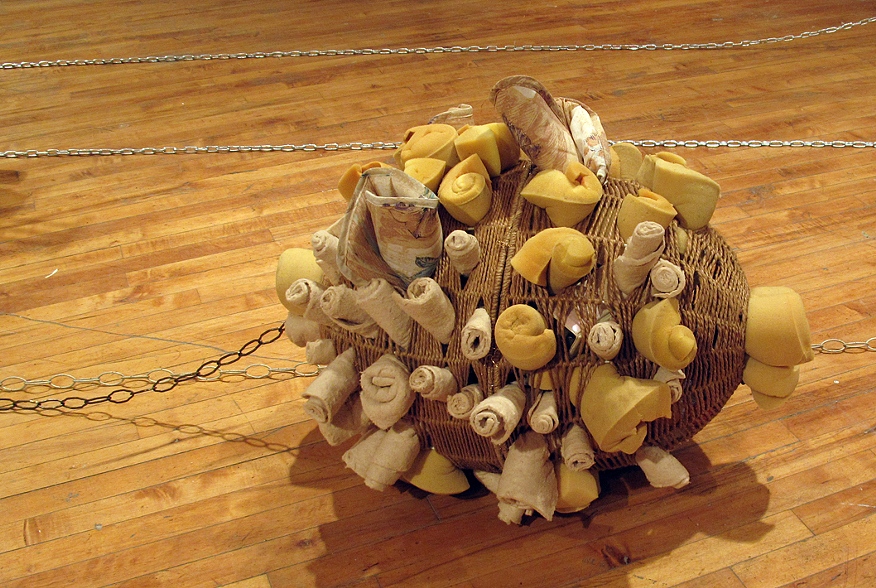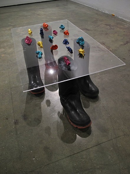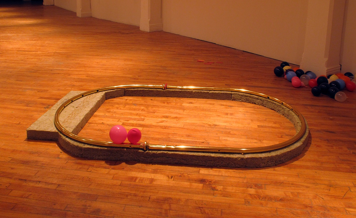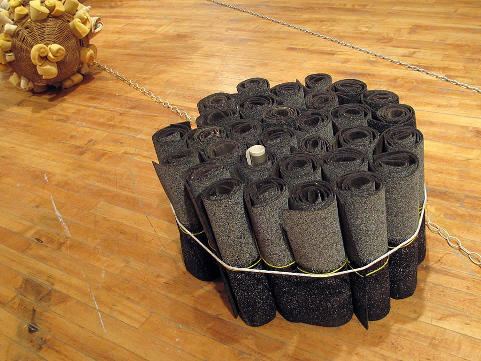 A one-ton shipment of unwanted household items, sporting equipment, furniture, and building supplies arrived at the gallery on the first day of the show. These materials had been collected for me by a local junk removal company. Each night of the exhibition, I worked the “night shift” – rearranging and reworking the items until they settled into a “final” arrangement. At the end of the exhibition, the materials were given away or taken back by the junk removal company.