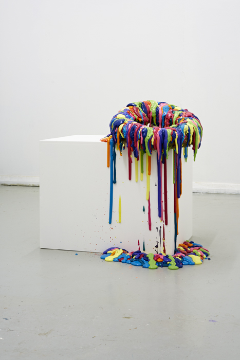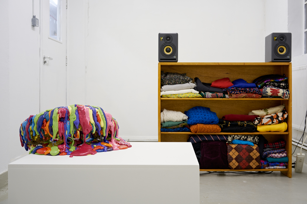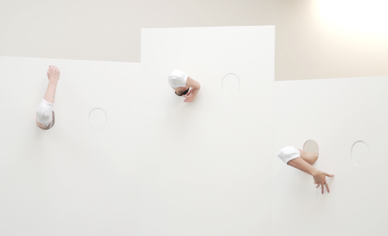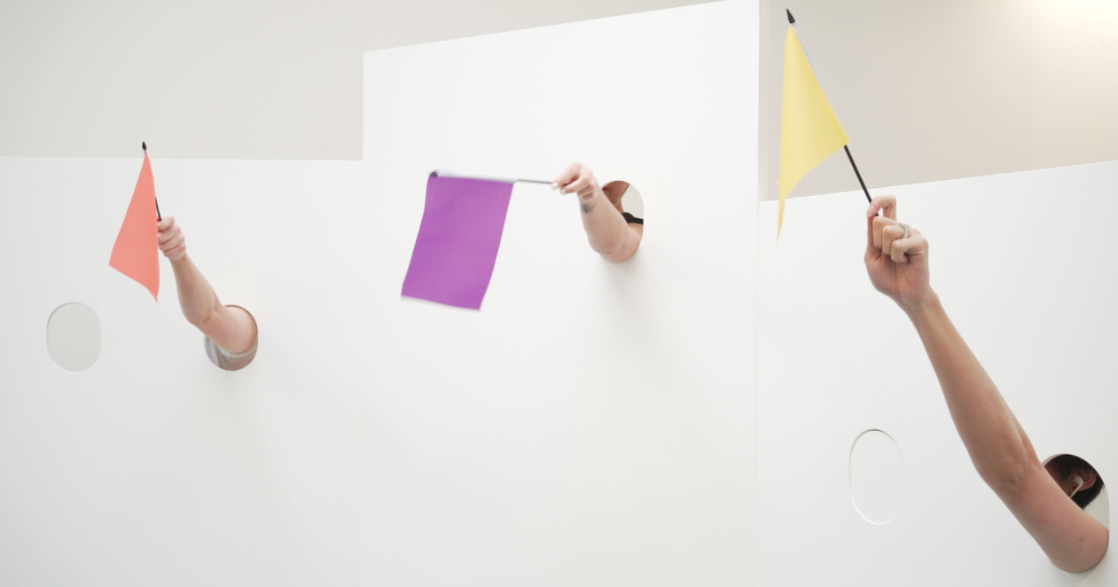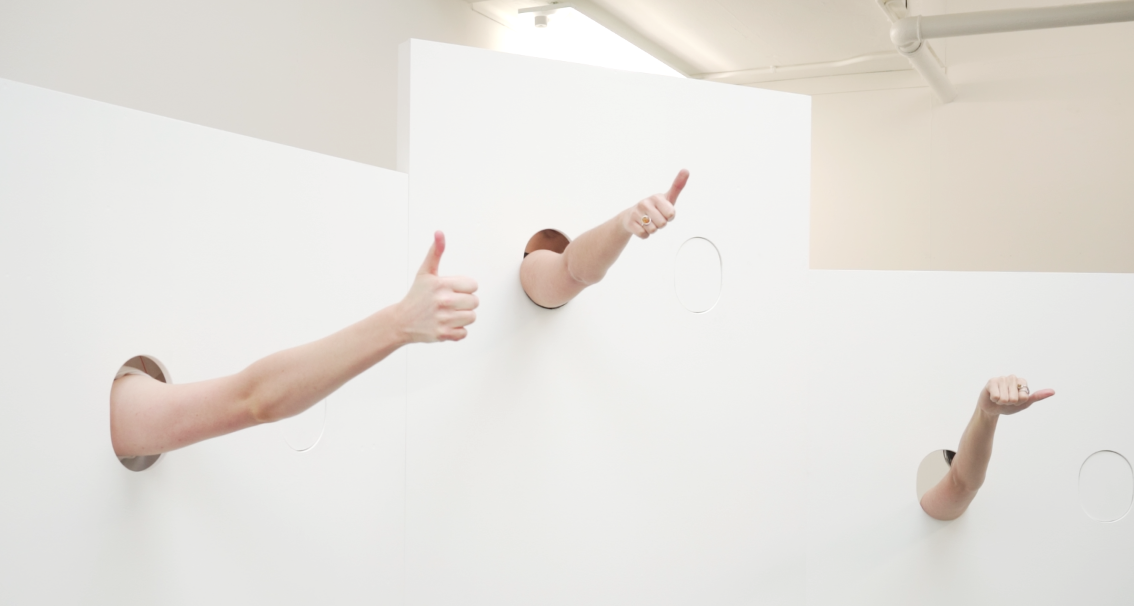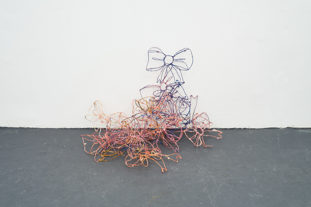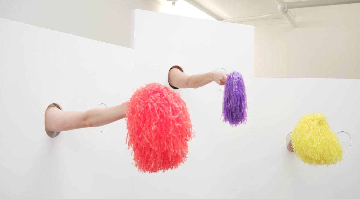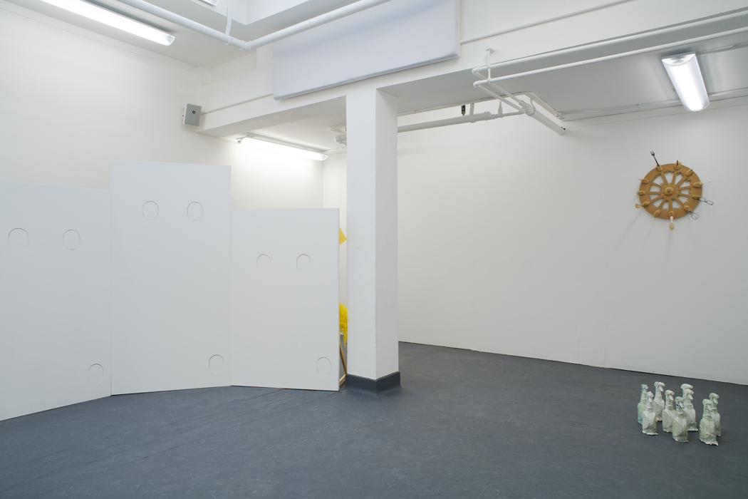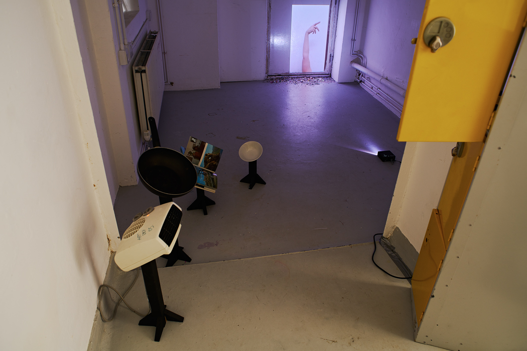 Through objects, gestures, a private wifi broadcast, painting, cutting, song, a screenshot and a roaming laser level line, Weathervane presents an album of scores, salves and scaffolds for the decision-making process. Almost-games, choreographed movements, chance procedures, small gestures and quite a few “bad” decisions speak to the desire to care for the future, to know the right path, to knit oneself into the known.