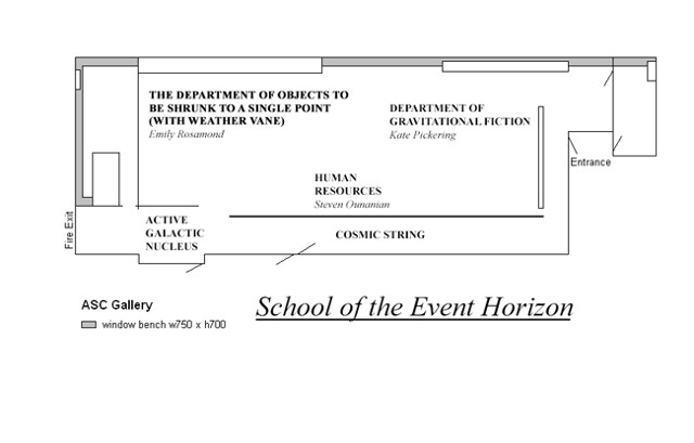 The School of the Event Horizon (Kate Pickering, Steven Levon Ounanian, Emily Rosamond) formed in 2014 after collaborating during the Trialogues Peer residency at ASC Gallery, London. Since their first exhibition, “True Stories from the Event Horizon”, they have exhibited, performed and led public writing workshops at Brockley Artist Village Studios, London; Tenderpixel, London; and Temporary Arts Projects, Southend-on-Sea.